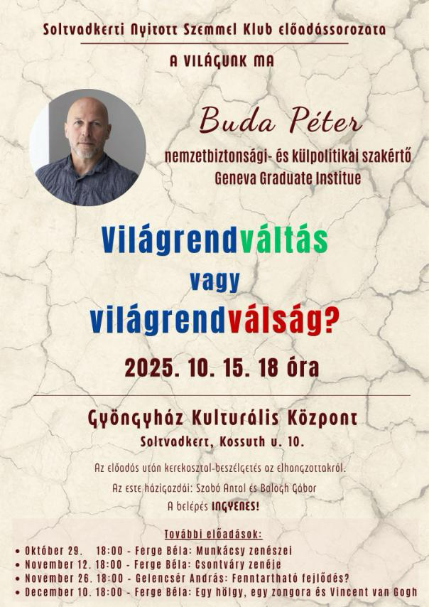 Október 15.  18:00    Világrendváltás vagy világrendválság?